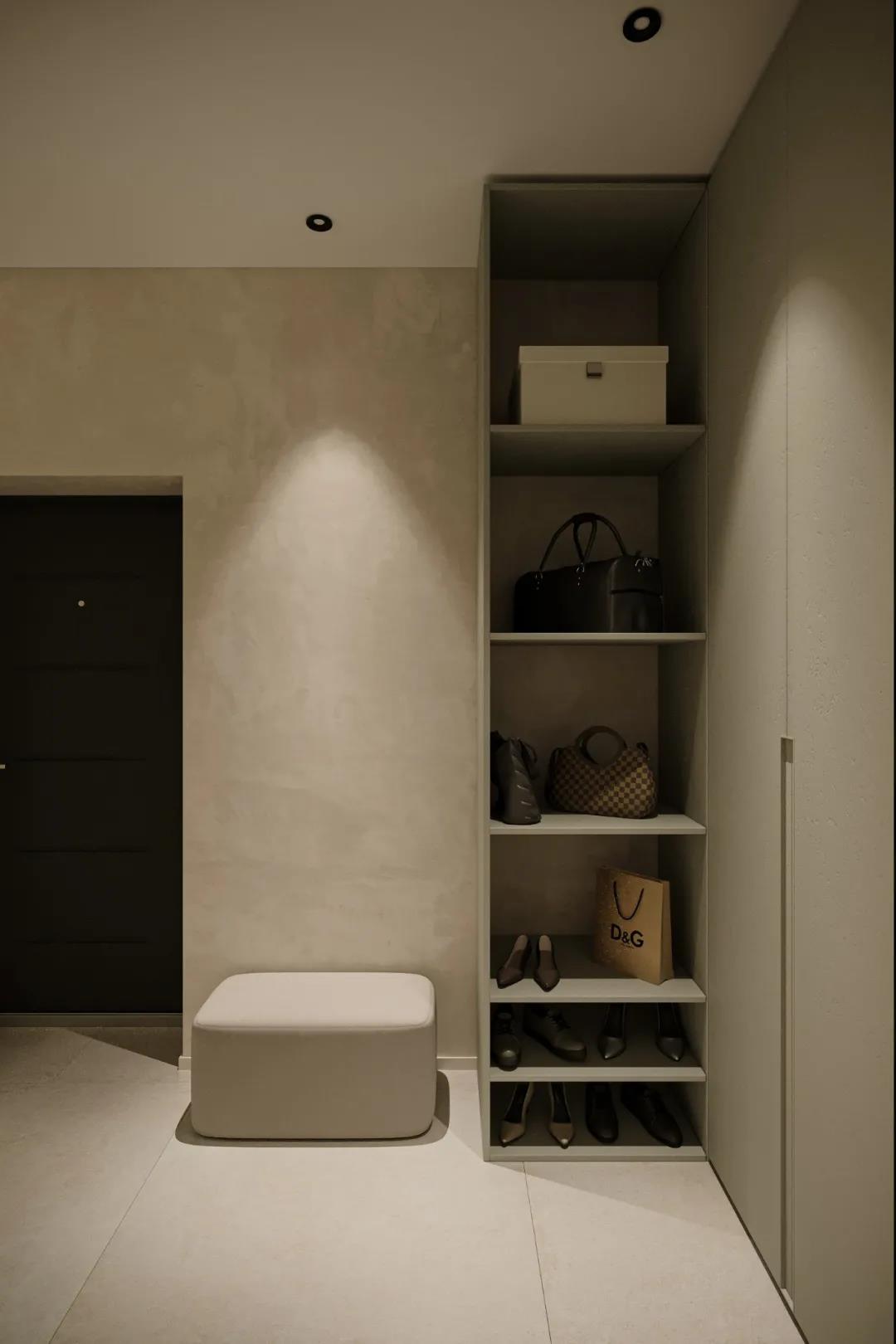 客廳里舒適的單椅沙发、模塊沙发組合,個性的象腿茶幾,室內設計簡單的肌理裝飾畫和純色地毯。空間里沒有主燈,細細的桿狀筒燈,能隨時的調節光源方向,調節氛圍。